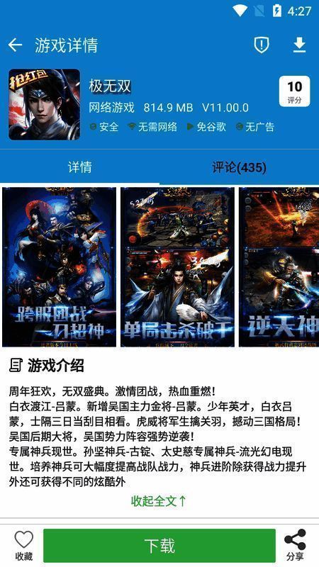 3、全球首创大型游戏一键下载安装,自动适配设备,无需寻找数据包。