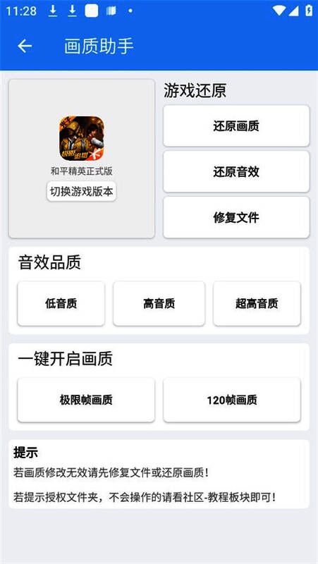 1、在本站下载安装唯梦工具箱后运行软件。点开画质助手,可修改和平精英的画质、音效等,还能开启120帧和极限帧画质;