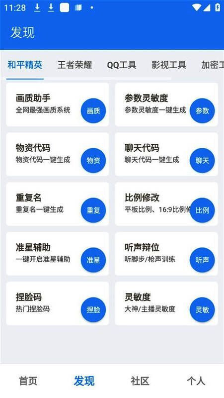 3、玩家可在和平精英模块下调整参数灵敏度、物资代码、聊天代码等;