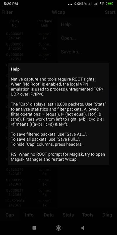 Wicap Demo手机版是一款专为Android设备打造的网络捕获数据包工具。它能让用户捕获并分析设备的网络流量,查看数据包详细信息,如源IP地址、协议类型、数据内容等。具备强大过滤功能,可按源或目标IP地址、协议类型、端口号等过滤。能导出为PCAP文件用于进一步分析,还可共享数据包。有原始、文本、Json、Hex四种视图。v2.8.2版本修复了已知bug,优化了体验。