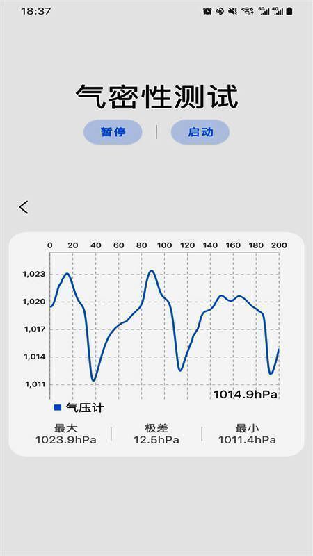 3. 可检测手机气密性,暂停和启动检测,自动计算范围,显示最大和最小压力。
