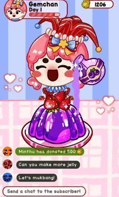 直播互动与奖励:通过直播,不仅能展示果冻制作过程,还能与观众互动提高人气。随着粉丝数量增加,可解锁新设备、原料,甚至获得特别奖励道具,提升吉吉的制作效率和果冻品质。