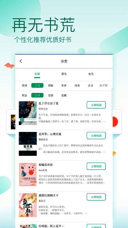 - 拥有庞大图书馆,包含言情、奇幻、历史、科幻等各类小说,热门与经典作品皆有。书籍推荐和排行榜每日更新,不错过热门小说。