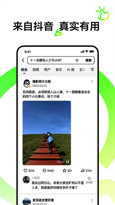抖音搜索app官网版是抖音打造的内容搜索引擎,也是网民开启Tiktok的新途径。