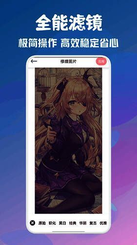 2、特效滤镜库:相机拥有复古、漫画、水彩等丰富特效滤镜,可依照片主题选择。