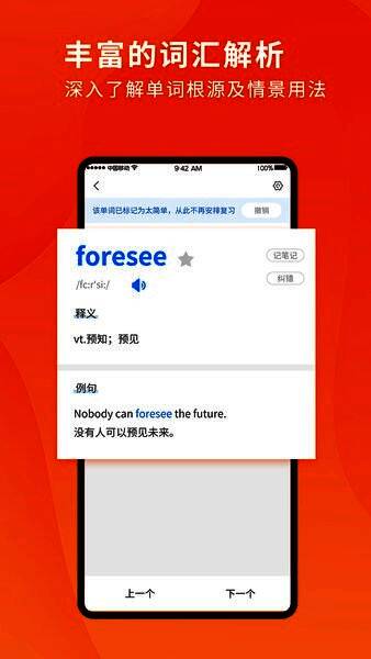 1. 提供丰富单词学习功能,有音标、定义、例句等,帮助用户充分理解和记忆单词。