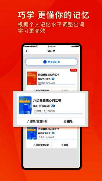 2. 用户可依据自身学习需求,如每天背诵数量和难度,制定记忆单词计划,实现有条不紊地学习。
