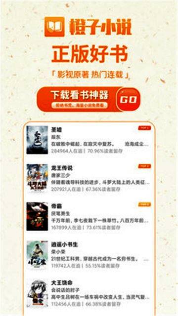 橙子小说在线全文免费阅读是一款优质的免费看书软件。它为用户收藏了海量精彩小说,用户能自由挑选,随时免费阅读。软件界面全新设计,可查看热门书单,轻松收藏心仪书籍。它满足用户所有阅读需求,内置无广告模式,让用户沉浸情节。