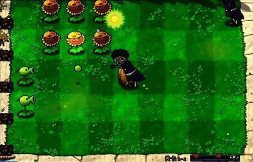 1、进入游戏后,优先种植向日葵,然后在有僵尸出现的路径后方放置豌豆射手(没有敌人的路线无需放置)。