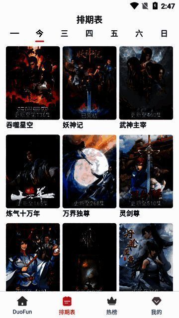 2、切换到排期表界面,可查看动漫更新时间,第一时间看新内容。