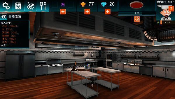 3、逼真厨房设备:包含炉灶、烤箱、冰箱等专业厨房设备,每种设备都有独特操作模式。