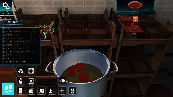 1、游戏设定手里只能拿一个东西,若为盘子锅等容器,可往里面添加东西,添加时滚轮向上可增加选取范围。(切得细碎也无妨)