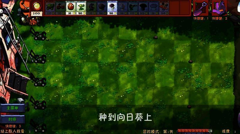 3、第一关会提供向日葵和豌豆射手两种植物供玩家使用。