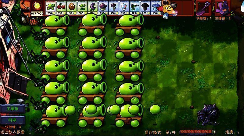 4、玩家可种植向日葵获取阳光,用豌豆射手攻击入侵僵尸。