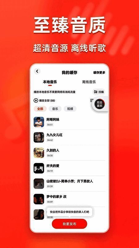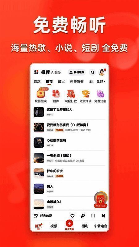 快音内置丰富曲库资源,有经典歌曲、流行音乐等多种类型,满足用户多样体验。所有音乐资源免费,收录各大知名音乐平台歌曲。用户还能在听歌时赚钱,甚至创作自己的歌曲。