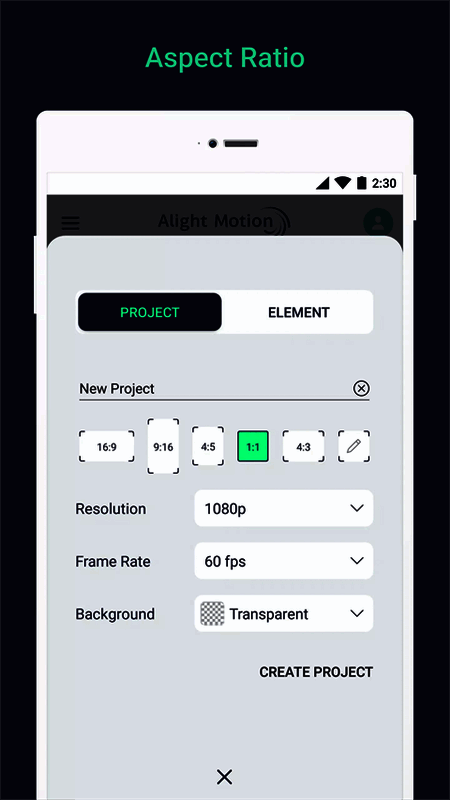 2、然后我们选择创建一个项目,设置项目名称、宽高比例、分辨率、帧速率、背景颜色。