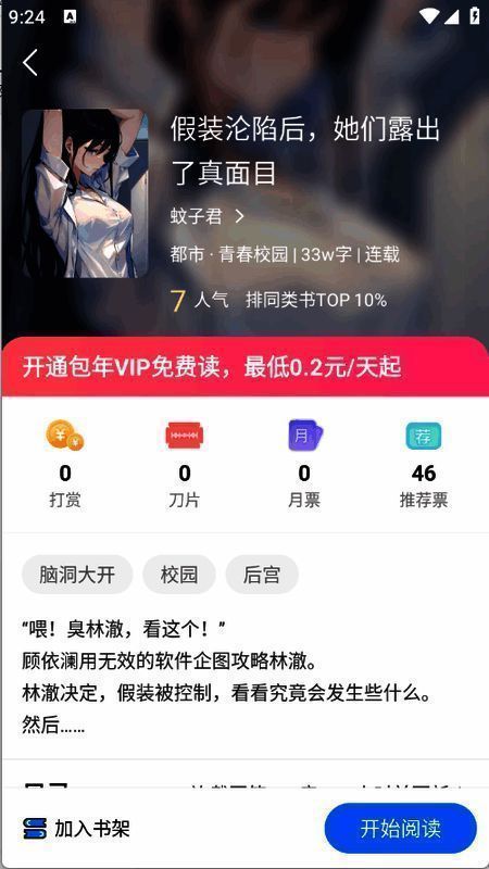 5、点开想看的小说进入详情页,点击“开始阅读”。