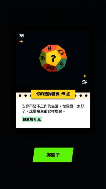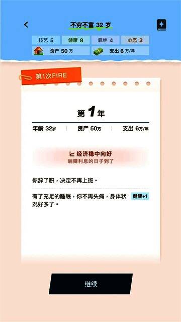 玩家要通过工作和投资获取收入,合理规划支出以积累财富。投资理财是关键部分,可选择股票、房地产等方式增值。游戏中有多种生活决策,如选择节俭或奢华消费,会影响财富积累速度。此外,玩家还需管理个人健康、社交等生活细节,确保实现提前退休。