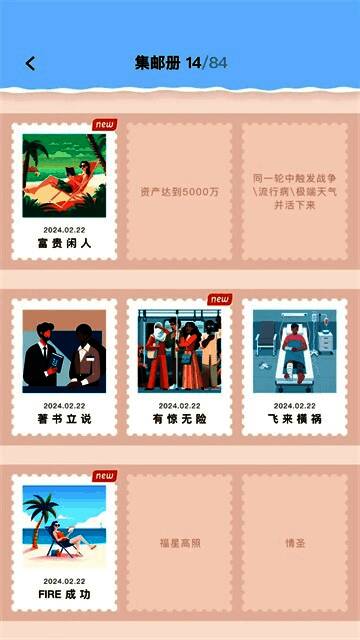 提前退休模拟器最新版是一款充满趣味的休闲文字模拟游戏。玩家能在游戏里,通过合理规划、投资理财和优化生活方式,提前达成退休梦想。