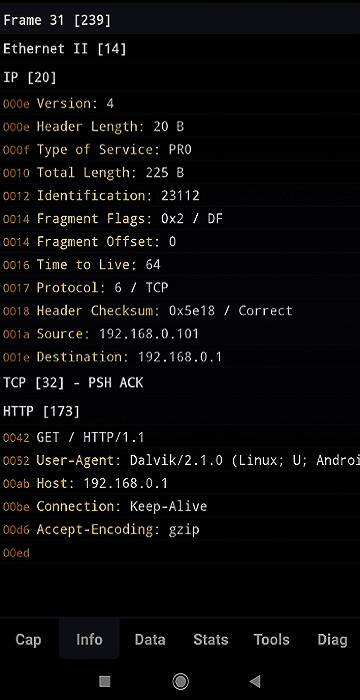 该软件可在手机上抓包。使用前要安装并正常运行谷歌市场和root,授予软件root权限才能开始抓包。抓包时提供四种视图,分别是查看原始数据的Raw视图、以Text形式查看请求/响应体内容的Text视图、以格式化Json字符串且支持节点操作的Json视图、以Hex形式查看请求/响应体内容的Hex视图。