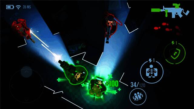 这款游戏没有复杂的剧情设定,能让玩家体验到纯粹的战术射击。它和常见的大多数fps游戏不同,首先是视角,俯瞰式上帝视角能让玩家快速了解地形和自己所处位置;操作也极为简单,左手摇杆控制角色移动,右手按键完成换弹、治疗等操作。