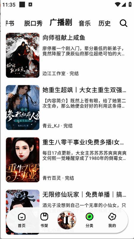 轻云听书提供高清流畅的播放音效,内置多种类型音频资源,全部免费且无广告干扰。详细分类助用户快速找到所需资源,还能收藏喜欢的资源以便下次播放。