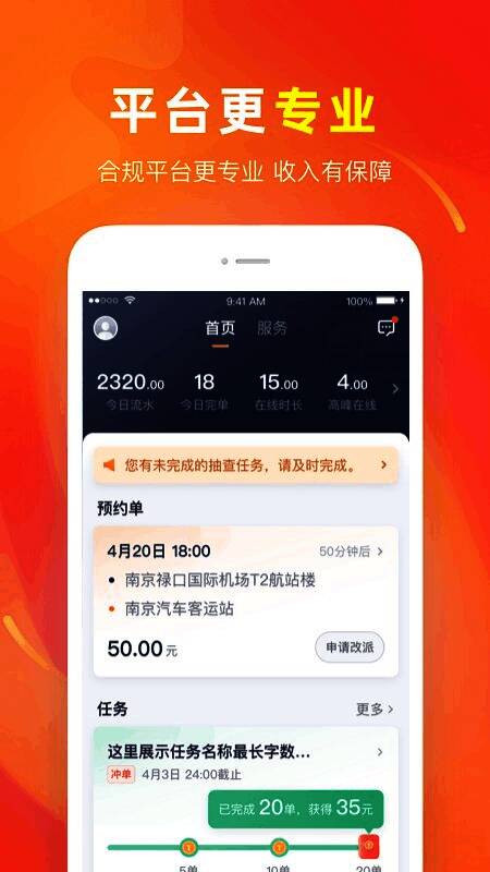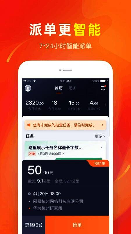 2、海量订单7*24小时智能调度,无需担心无单可接,订单分配公平。