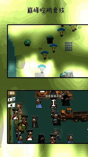 《巅峰吃鸡竞赛》为玩家打造了一场刺激非凡的吃鸡射击游戏盛宴。玩家组队化身角色踏入战场,在持续缩小的区域里收集武器资源,与其他玩家展开激烈对决,直至成为最后的幸存者。游戏采用俯视射击视角,拥有多样地图和丰富装备,独特猫角色、实时语音与随机地图增添乐趣。