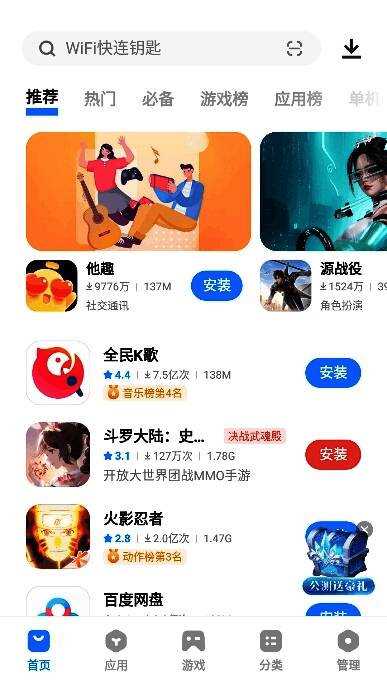 1. 应用下载:您能通过推荐、应用分类、游戏板块和排名等方式,精准找到喜欢的应用。