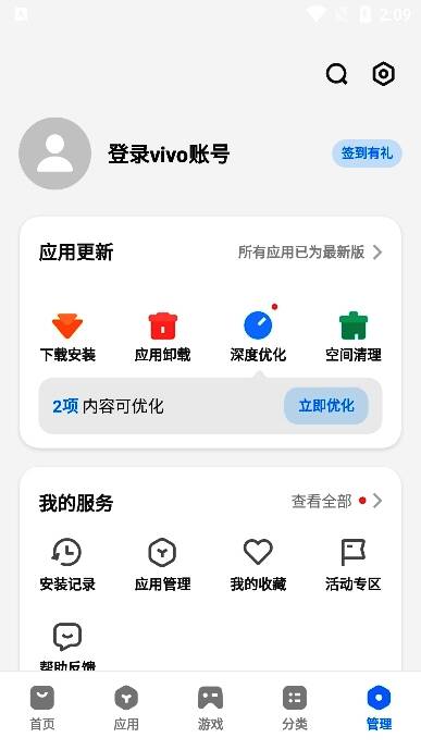 2. 应用更新:一键即可更新vivo应用商店里的移动应用,升级过程快速高效。