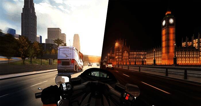 2、真实物理,操控拟真:采用先进的物理引擎,摩托的加速、刹车、倾斜等操作都高度拟真,带来沉浸式驾驶体验选择。