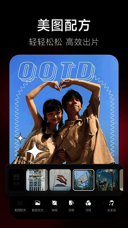 美图秀秀正版官方版下载中,所有图片都有编辑模板。编辑时可直接使用滤镜、贴纸、文字等,操作简便。用户能直接搜索和筛选,点击选择喜欢的过滤器应用到图片。同时,编辑过程中图片的清晰度、大小、格式不受影响,编辑应用后可直接导出。