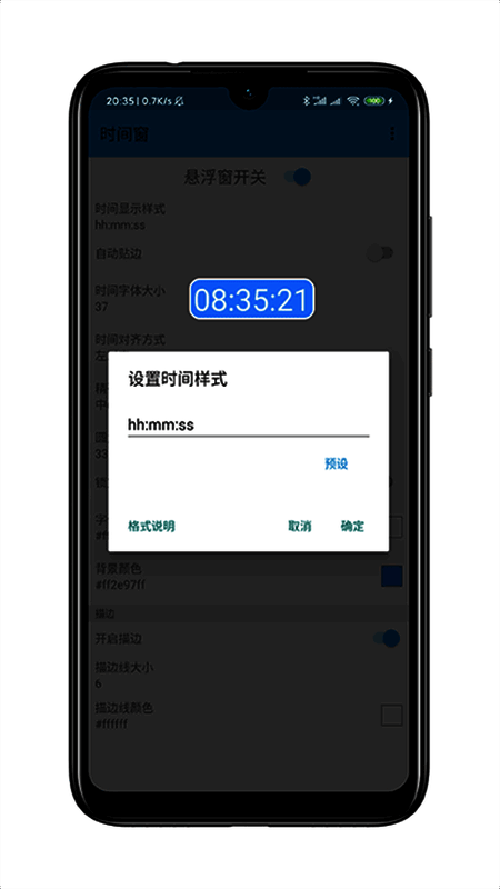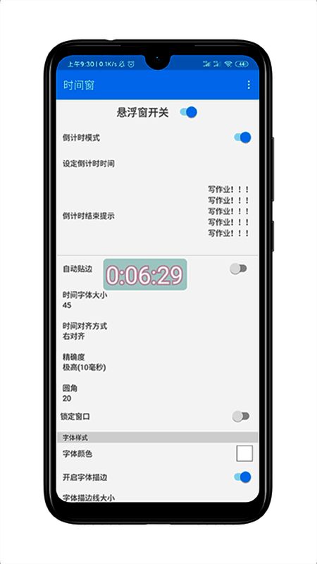 设置简便,拖动即可开启时间提醒;时间浮动窗效果可定制;时间精度高,联网显示标准时间。