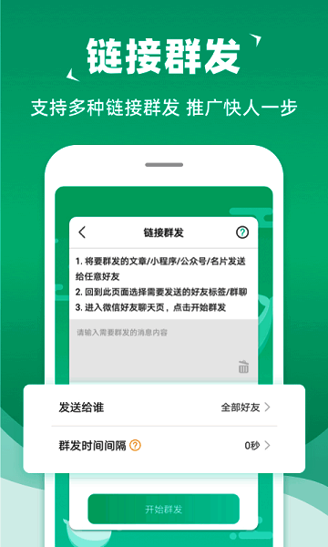 微信群发助手是一款专业的手机资讯消息群发工具,它支持多种消息类型,如文字、图片、音频、视频、图文等。用户能自由挑选发送的消息类型,通过群发图文消息可深入触达用户群体,提升营销效果。还能利用标签群发,针对特定用户群组精准营销,且群发到粉丝列表时,可按粉丝性别、地理位置、粉丝标签等条件筛选,增强营销策略。