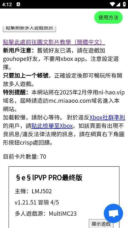 MCXbox联机盒子免费版是专门为《我的世界》基岩版Xbox玩家打造的在线工具。它打破了平台壁垒,让Xbox玩家能与Windows、Android、iOS等其他系统的玩家畅快探索《我的世界》基岩版的精彩世界。无需复杂配置,一键即可实现跨平台连接,堪称《我的世界》基岩版Xbox玩家必备的在线助手。