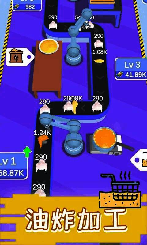 《现做现卖炸鸡餐厅游戏(Idle Chicken Processing)》是一款极具趣味的模拟经营游戏。玩家化身炸鸡店老板,亲手制作美味炸鸡,吸引顾客并运营餐厅。