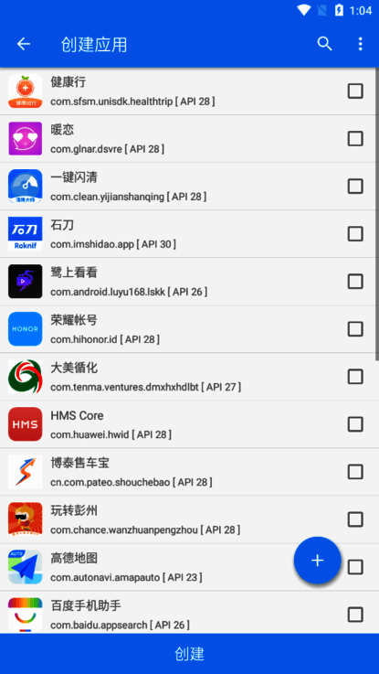 1. 点击右下角浮动按钮,选择“创建应用”。