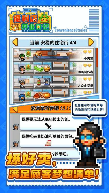 《便利店开业日记》是经营模拟游戏,玩家扮演便利店老板,开启新货架和产品吸引顾客,通过促销培养回头客、定制特色产品,目标是成为最大连锁便利店。