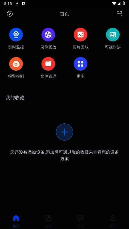 下载安装后无需注册,打开gDMSS Lite进入主界面。进入“远程监视”栏,默认进入“实时监控”项目。若已添加过设备,点击“+”号即可观看视频。