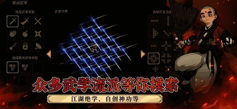 游戏采用SFC、MD时代的Q版像素风,结合宋代水墨画进行场景设计,讲述一段纯正的中国传统武侠故事,带玩家重温90年代经典RPG的美好时光。