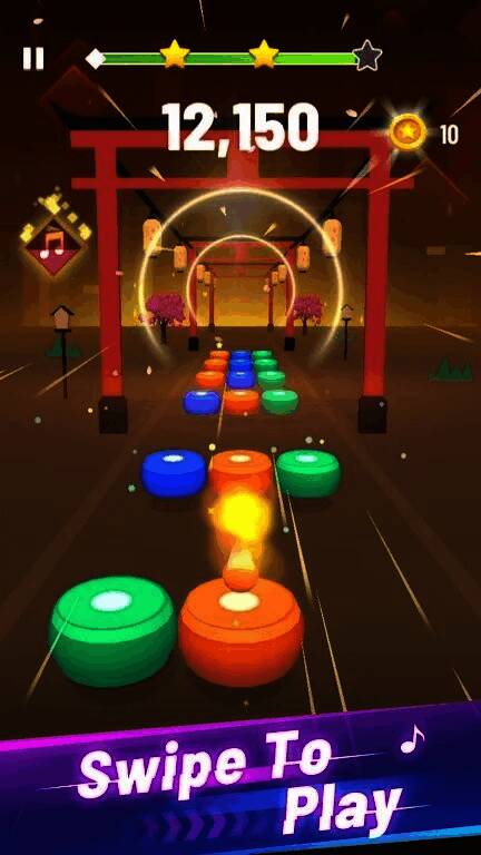 玩家点击屏幕让彩色球在音符轨道上跳跃,准确落在音符上,保持连贯跳跃且避免掉落。游戏关卡丰富,各关卡背景和音乐不同,进度推进时,速度和复杂度递增。过程中可收集音符或道具,解锁新皮肤和动态效果,使游戏更个性化。同时提供多难度选择,玩家可按需挑战。