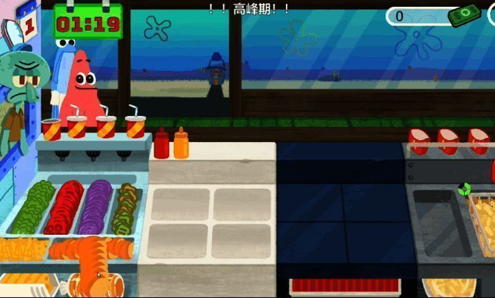 1. 开启海绵宝宝主题的沙威玛经营玩法挑战,在休闲时光进行管理经营。