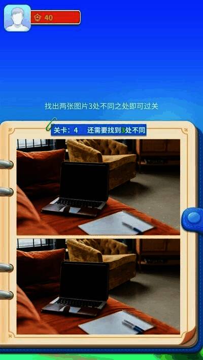 4. 关卡升级:随着关卡推进,图片复杂度和差异难度增加,玩家需更细心快速地找差异。