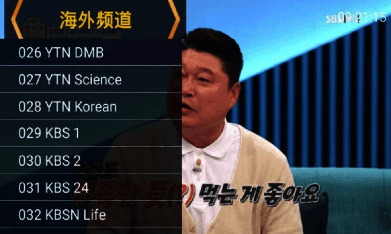 2、节目选择:点击横屏左半部分,会弹出节目选择列表。可左右调整选择类别,上下滑动选择相应节目或频道。
