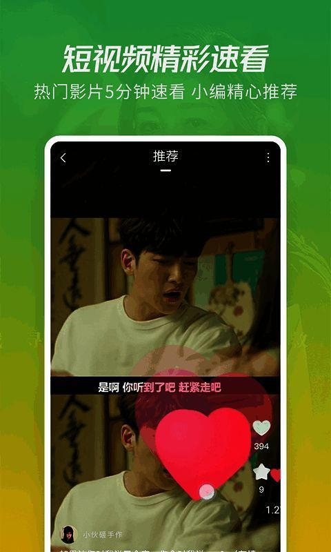 2. 短视频精彩刺激,观看速度快,编辑精心推荐,热门电影5分钟快速看完。