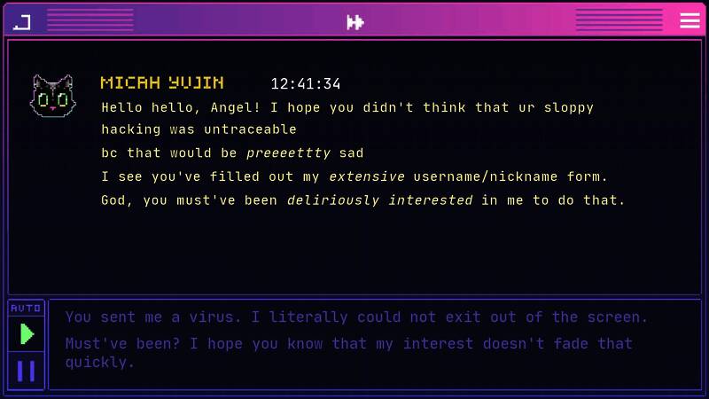 ERROR143手机中文版是一款令人心动的爱情模拟游戏。玩家在网络奇遇中邂逅传说里的黑客高富帅,开启与迷人黑皮帅哥的浪漫恋爱之旅。剧情围绕两人从相遇、相识、相爱直至步入婚姻殿堂展开,玩家的每一个选择都左右着人物关系发展与游戏胜负。快来下载ERROR143手机版开启甜蜜恋爱吧!