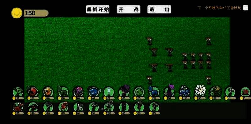 3、地图上会出现众多僵尸,此时可开始排兵布阵。