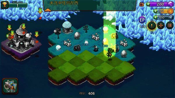 1、进入游戏后,初始无资源,点击左下角进行探索。