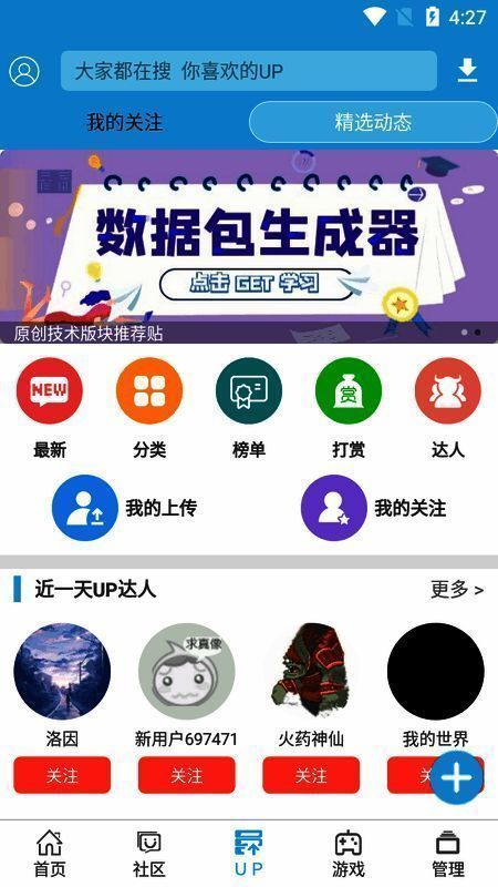 3、可以看到右上角有一个【搜索用户】,点击进入。