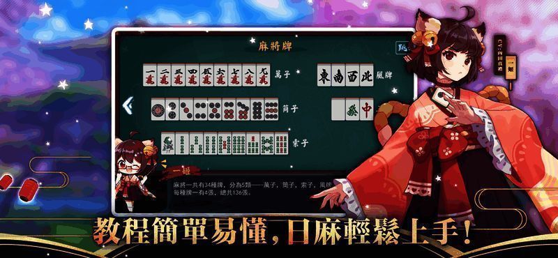 1. 免费的二次元对战日式麻将,让你享受从初学者成长为高手的阶梯式模式。